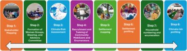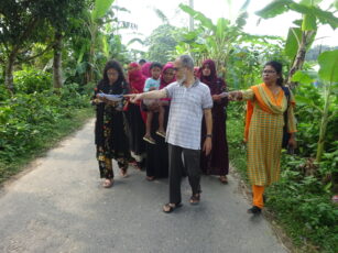 By integrating the GR4W approach, the project reimagined rural roads as climate-smart infrastructure, incorporating water management, slope stabilization, and tree planting to transform road-related risks into opportunities. At the same time, the LLA approach placed women’s groups from communities along two rural roads in Mohanpur and Godagari at the heart of the planning process, ensuring that adaptation strategies were shaped by local knowledge and priorities. This approach follows an 8-step process for developing women-led adaptation plans for Green Roads for Water, designed to inform and guide future road projects in the area.